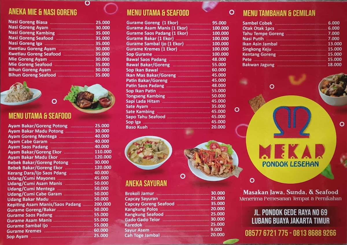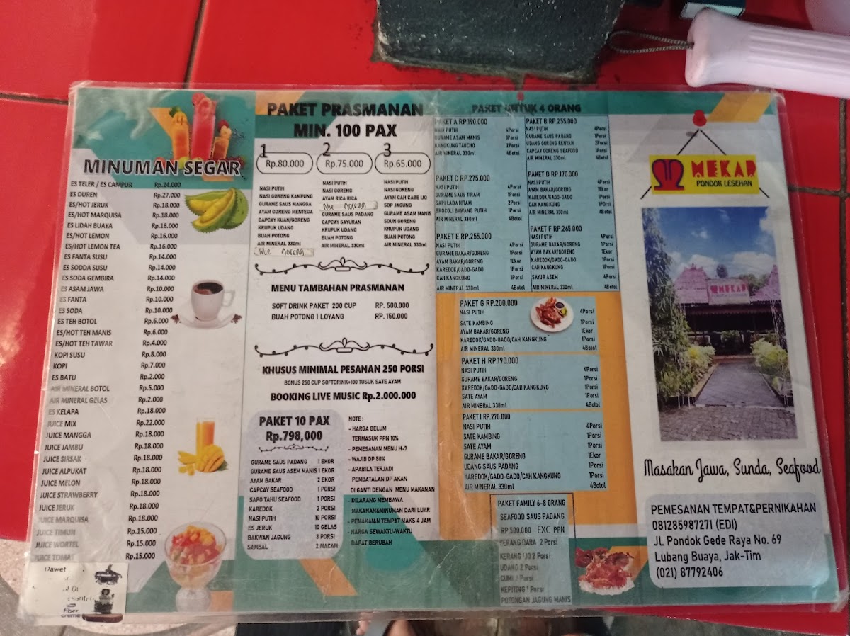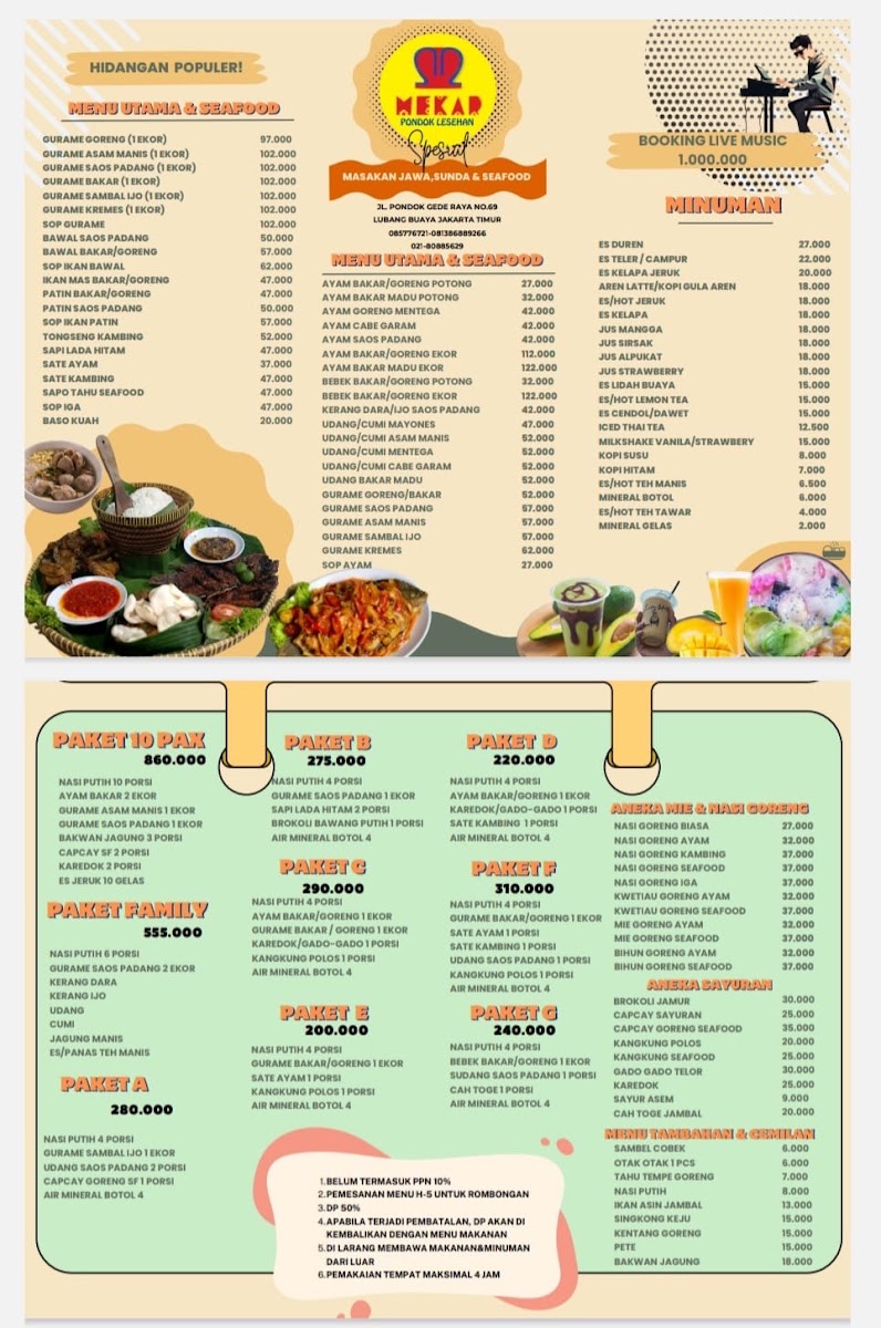 Customers rave about the serene ambiance, beautiful garden, and the opportunity to engage in live music, creating a vibrant atmosphere. Mekar Lesehan invites you to savor the tastes of Indonesia while enjoying a cozy, welcoming atmosphere. Your next culinary adventure awaits!